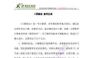首先,让我们来感受一下口算除法的魅力。想象你正在超市购物,突然发现手里有一堆零钱,需要快速计算找回的金额。这时候,口算除法就能派上大用场了。它不仅能在生活中帮助我们解决实际问题,还能锻炼我们的思维能力。